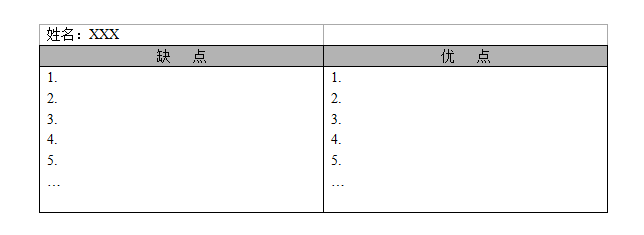 - 第三步,在左邊“缺點”欄中,寫下全部你不喜歡他的理由或他身上全部缺點;
