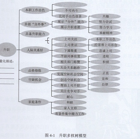 另外,還有諸如保持耐心等許多其他必要條件、充分條件以及輔助條件。下面的升職多權(quán)樹可以為我們制定一個更系統(tǒng)的升職計劃提供進步參考(見圖4-1)。